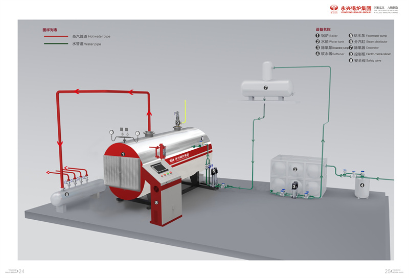 臥式快裝,電熱管兩端布置,汽、水空間大,電熱管所產(chǎn)生的熱量能及時傳導,得到充分的冷卻,延長其壽命